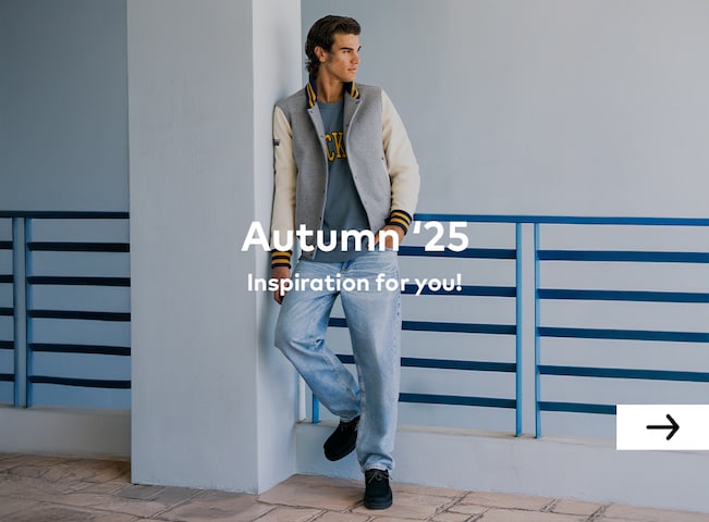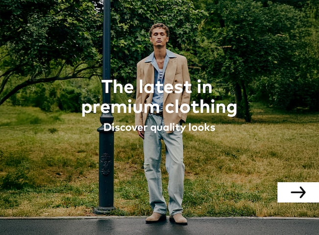You want to bring a breath of fresh air into your wardrobe, reinvent yourself, or spice up your signature styles a little? Then let your eyes wander through our extensive men's fashion range and find what suits you best. You're more into casual and sporty? Thousands of jeans models are just waiting for you, plus casual shirts in trendy colours and styles; add a pair of cult trainers and your all-day outfit is ready. Or do you want to change into really chic threads? Then look for fine business shirts and subtle pleated trousers, plus high-quality leather loafers, that's it – you'll be a welcome guest at every wedding and social event. In between casual & business wear, the range is huge: there are many variations of menswear for every nuance and style. The world of accessories is not closed to you either – on the contrary, it is wide open to you. From cool scarves and shawls to jewellery, watches, belts and sunglasses, you'll find everything your fashion heart desires here.